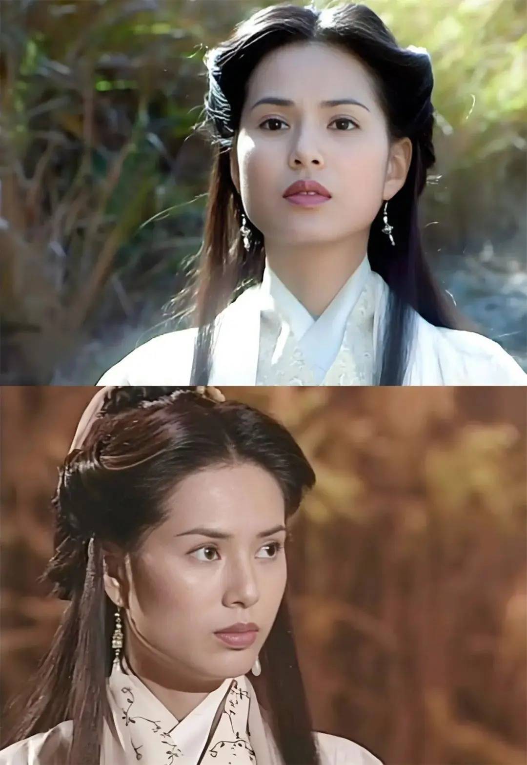以“玉洁冰清”的古典气质著称,其古装扮相自带书卷气,眉眼间流露大家闺秀的端庄。该版王语嫣更贴近原著中“神仙姐姐”的设定,陈玉莲通过细腻的肢体语言展现角色对武学的痴迷与对慕容复的痴情,其表演被评价为“骨子里的高贵”。
