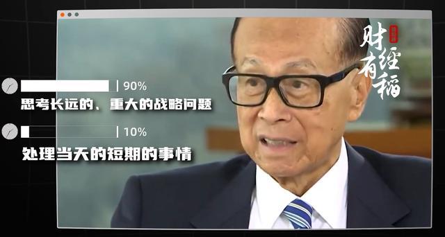 李嘉诚曾说自己每天90%的上班时间都用于思考长远的重大战略问题,只花10%的时间处理当天的短期事务。